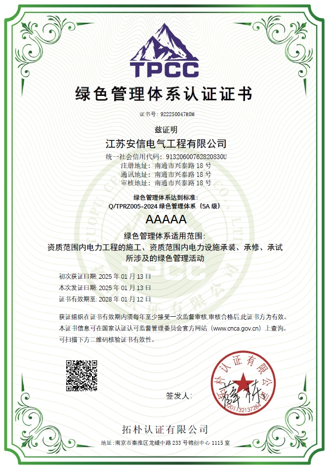5A级绿色管理体系认证