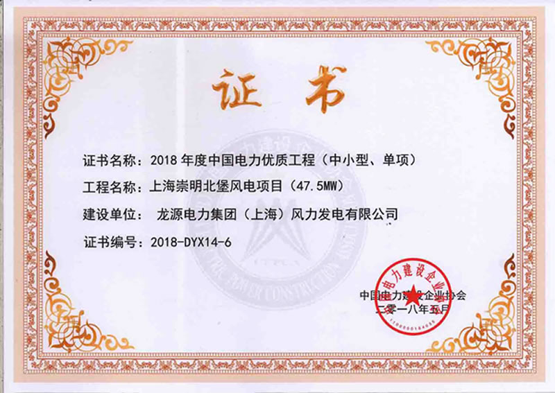 2018年5月,上海崇明北堡风电项目获得了“2018年度中国电力优质工程(中小型、单项)奖”。我公司在该项目中承揽了升压站电气安装工程,因我公司参建施工人员的管理及施工方面的表现获得了建设方龙源电力集团(上海)风力发电有限公司(以下称“上海龙源”)的肯定,上海龙源还特意于2018年7月发来了表扬信,并特意点名表扬了我公司项目经理王磊,资料员顾季锋,在此我们首先对这两位被表扬的员工表示热烈祝贺,并对所有参与该次施工的员工们表示感谢,感谢你们的努力为公司获得了相关单位的认可,感谢你们展示出了我们公司的良好形象,你们在前方挥汗,公司就是后方为你们提供所有保障的后盾。