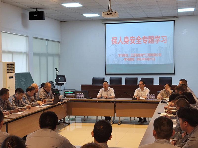 6月21日,南通供电公司党委书记付靖、安监部副主任陈宇等领导,到江苏安信,一起座谈“保人身安全专题学习”体会。