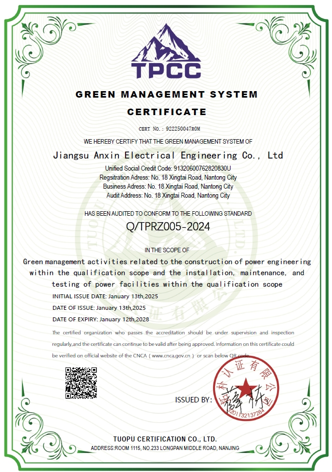 【喜报】2025年元月13日,我公司获得5A级绿色管理体系认证,为新的一年的添彩!